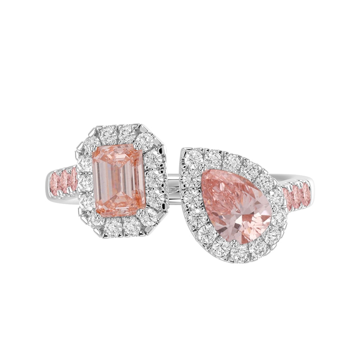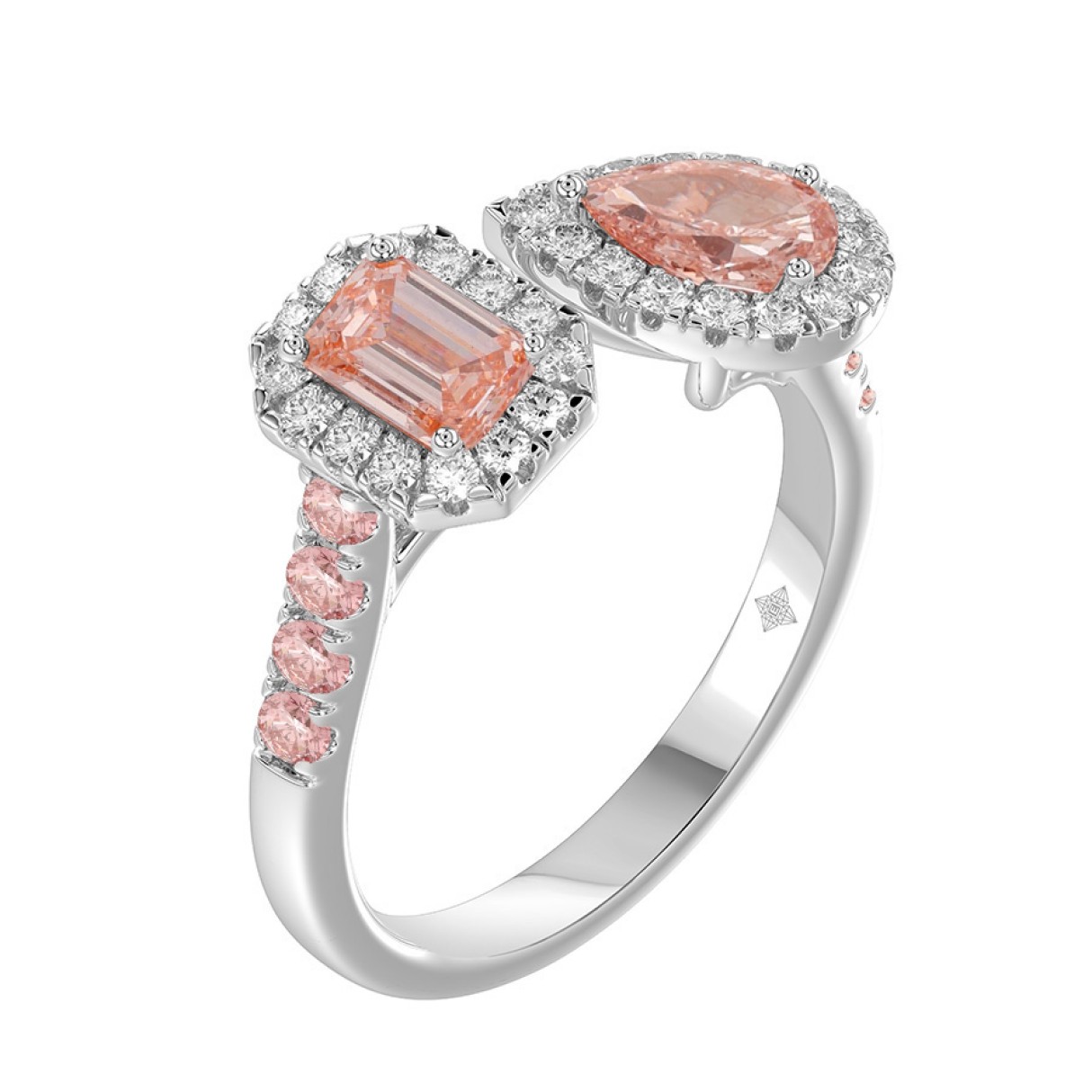 ETERNAL BLUSH COLLECTION LADIES RING 1 1/2CT ROUND/EMERALD/PEAR DIAMOND 14K WHITE GOLD (CENTER STONE PINK EMERALD DIAMOND 1/2CT/CENTER STONE PINK PEAR