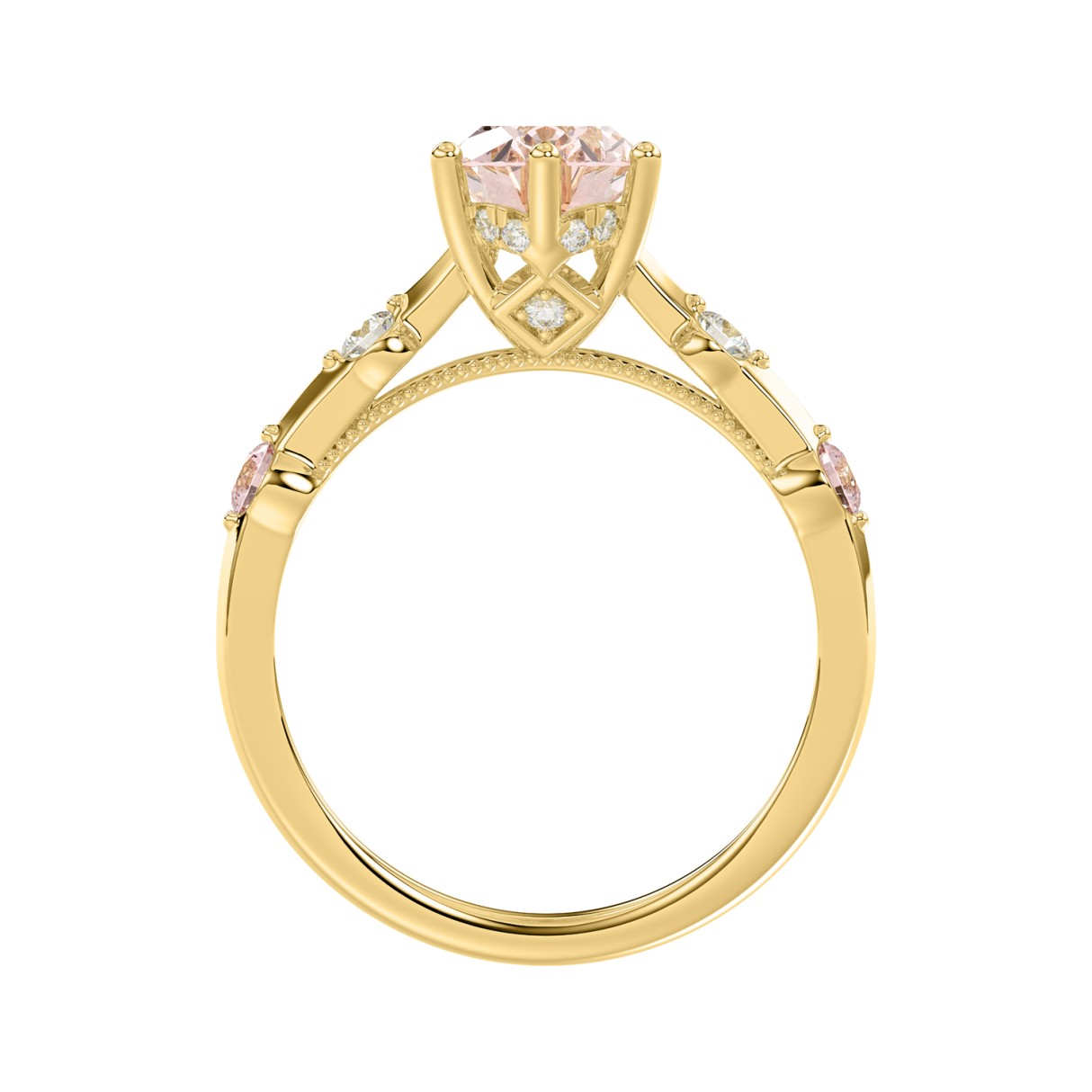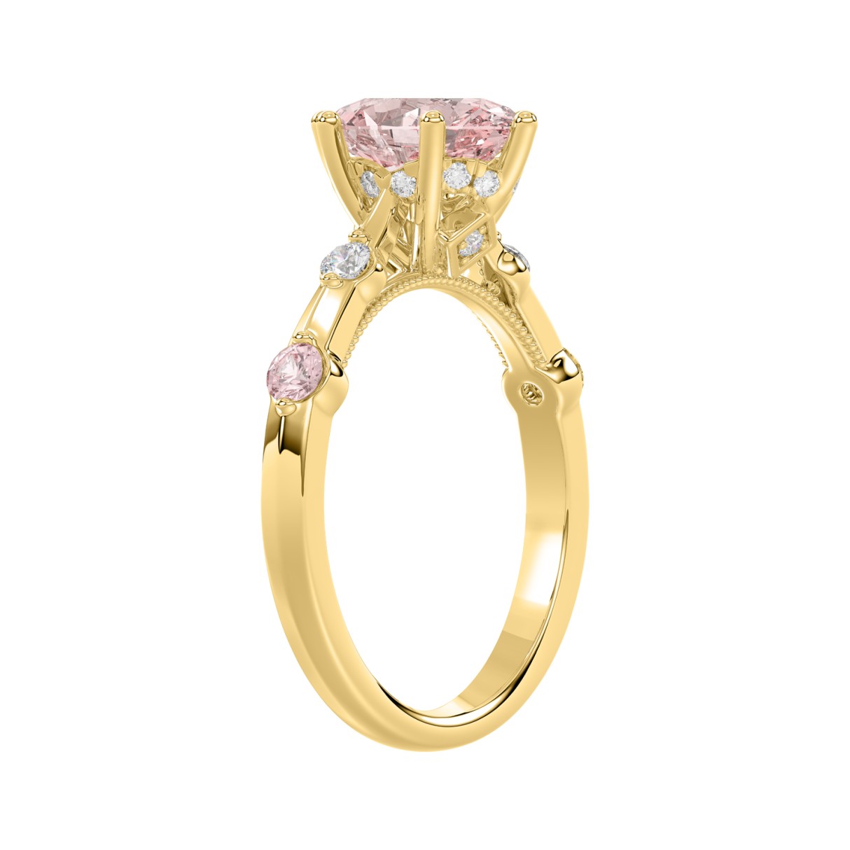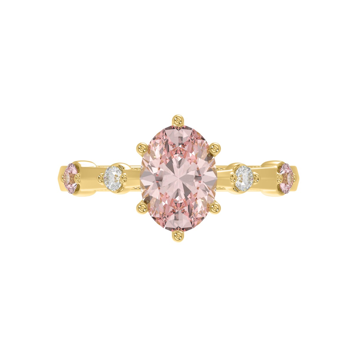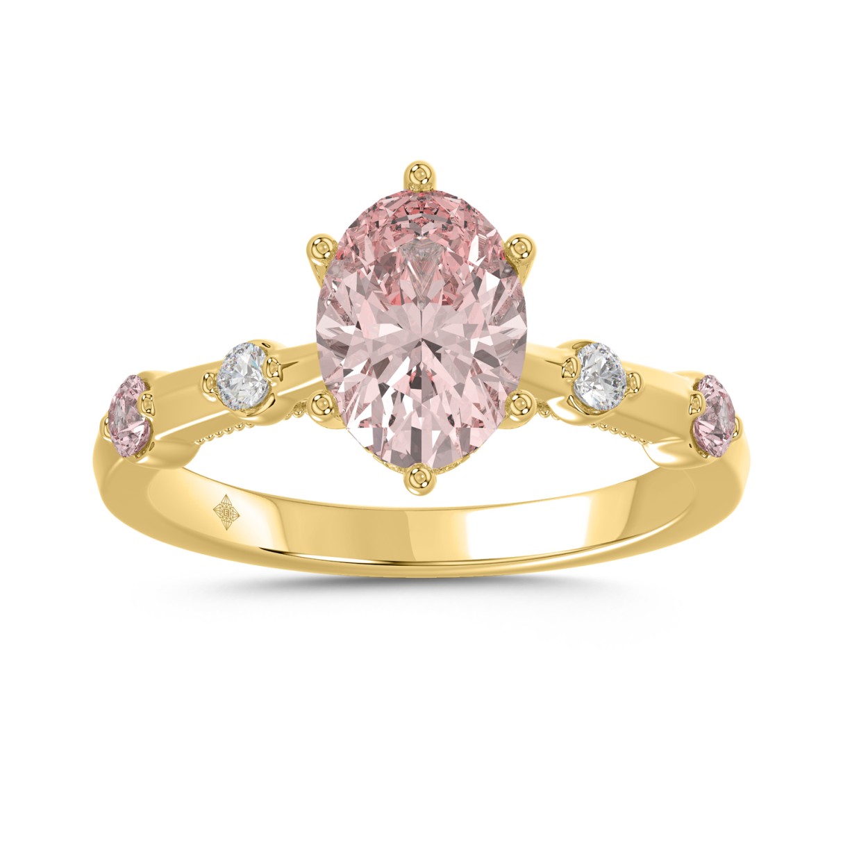 ETERNAL BLUSH COLLECTION LADIES RING 1 3/4CT ROUND/OVAL DIAMOND 14K YELLOW GOLD (CENTER STONE PINK OVAL DIAMOND 1 1/2CT)