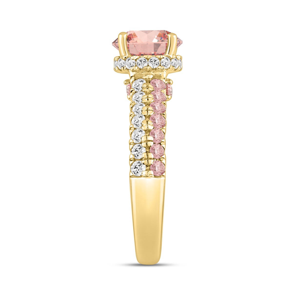 Home Rings ETERNAL BLUSH COLLECTION LADIES RING 2 1/2CT ROUND DIAMOND 14K YELLOW GOLD (CENTER STONE PINK ROUND DIAMOND 1 1/2CT)