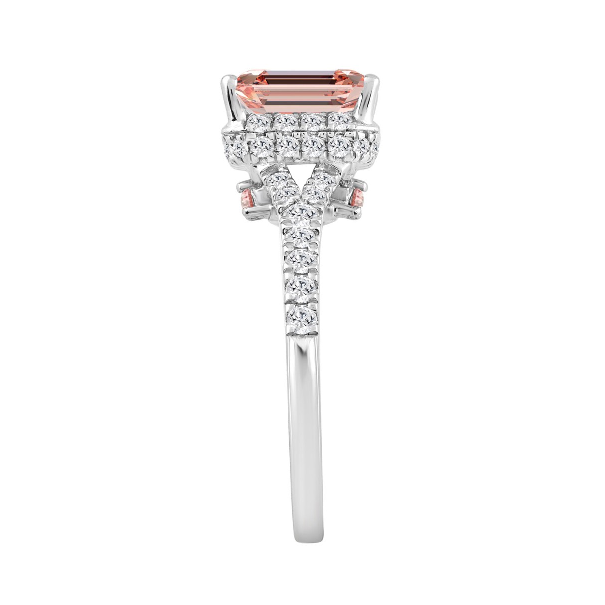 ETERNAL BLUSH COLLECTION LADIES RING 2 1/5CT ROUND/EMERALD DIAMOND 14K WHITE GOLD (CENTER STONE PINK EMERALD DIAMOND 1 1/2CT)