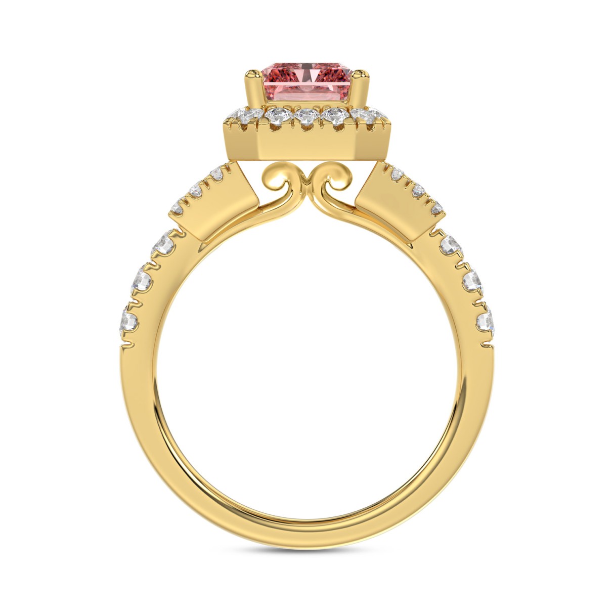 ETERNAL BLUSH COLLECTION LADIES RING 2 1/5CT ROUND/EMERALD DIAMOND 14K YELLOW GOLD (CENTER STONE PINK EMERALD DIAMOND 1 1/2CT)