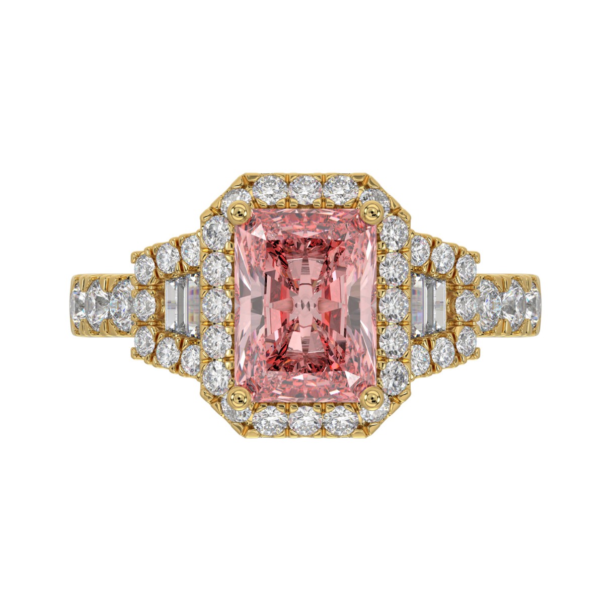 ETERNAL BLUSH COLLECTION LADIES RING 2 3/4CT ROUND/BAGUETTE DIAMOND 14K YELLOW GOLD (CENTER STONE PINK RADIANT DIAMOND 2CT)