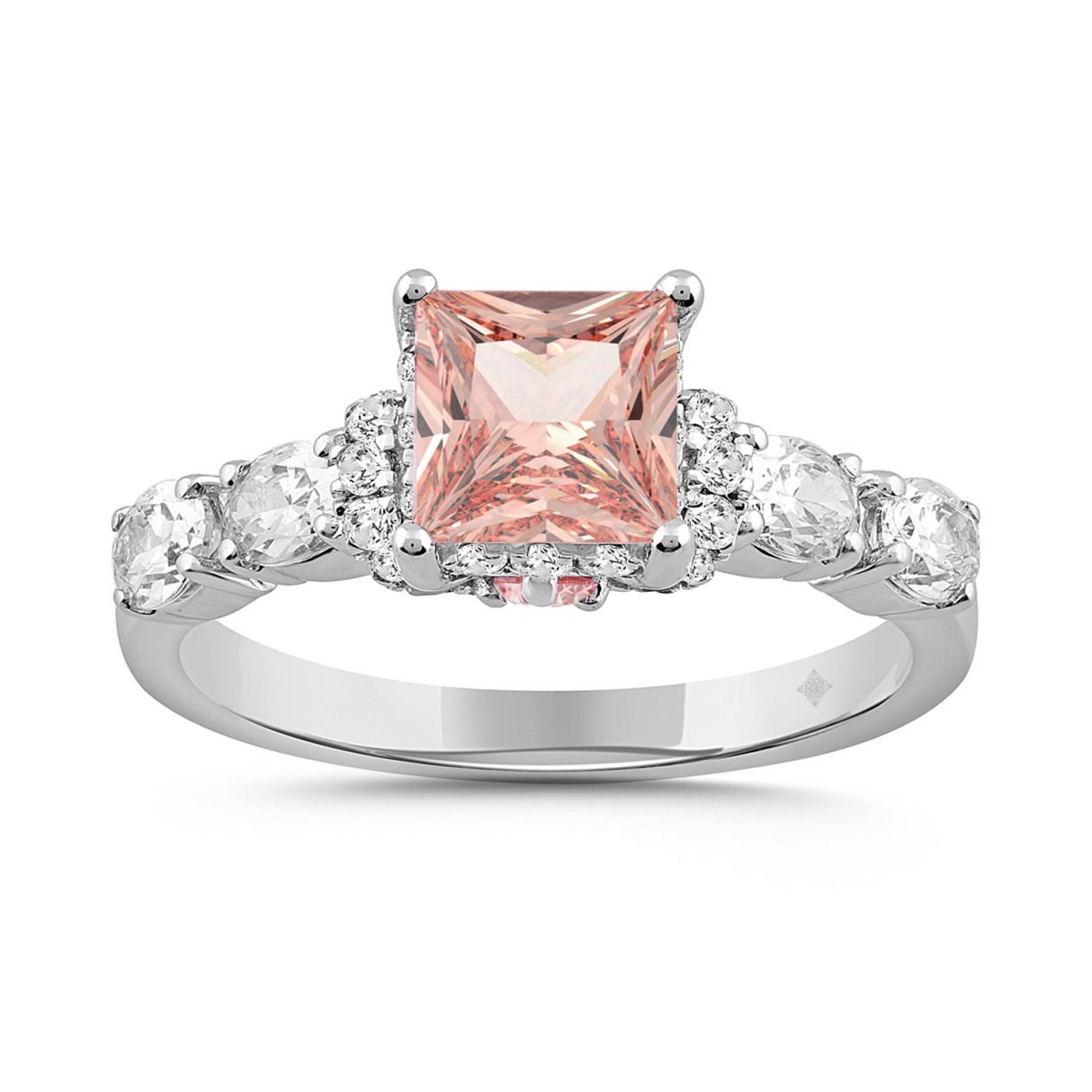 ETERNAL BLUSH COLLECTION LADIES RING 2CT ROUND/PRINCESS/OVAL DIAMOND 14K WHITE GOLD (CENTER STONE PINK PRINCESS DIAMOND 1CT)