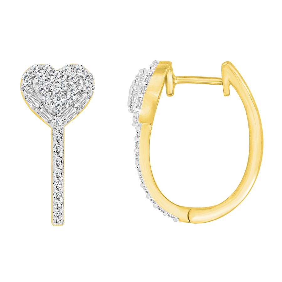Home Earrings HOOP EARRINGS 0.50CT ROUND/BAGUETTE DIAMOND 14K YELLOW GOLD