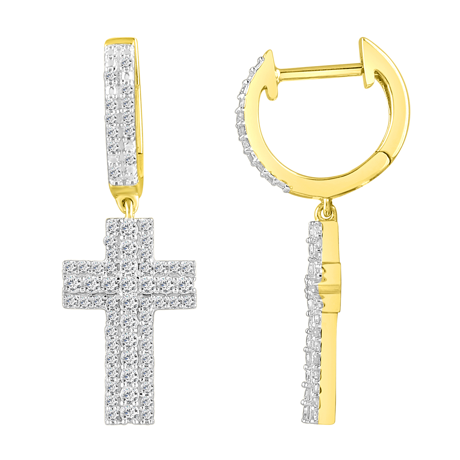HOOP EARRINGS 0.50CT ROUND DIAMOND 10K YELLOW GOLD