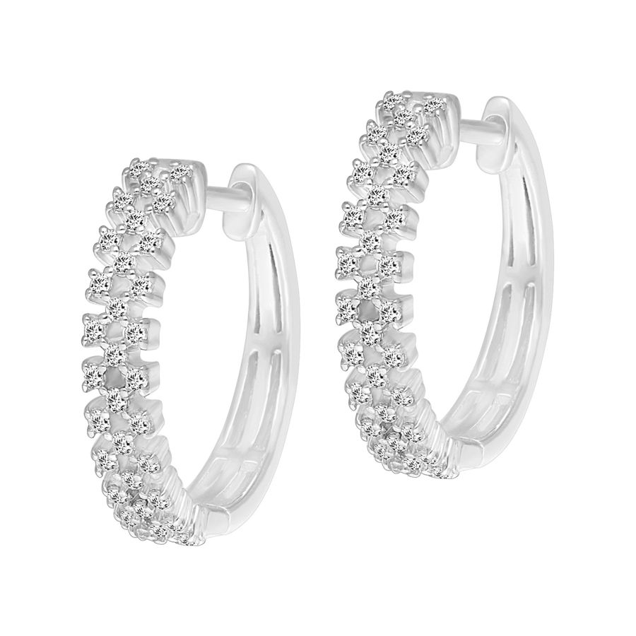HOOPS EARRINGS 0.25CT ROUND DIAMOND 10K WHITE GOLD