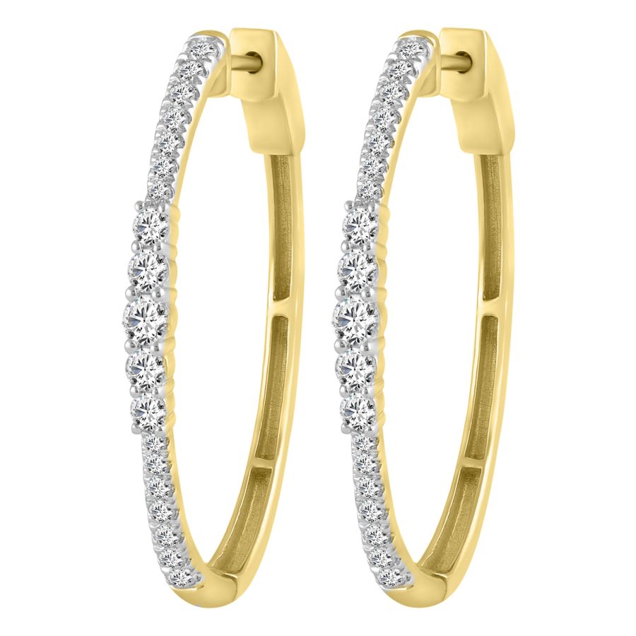 HOOPS EARRINGS 1.00CT ROUND DIAMOND 10K YELLOW GOLD