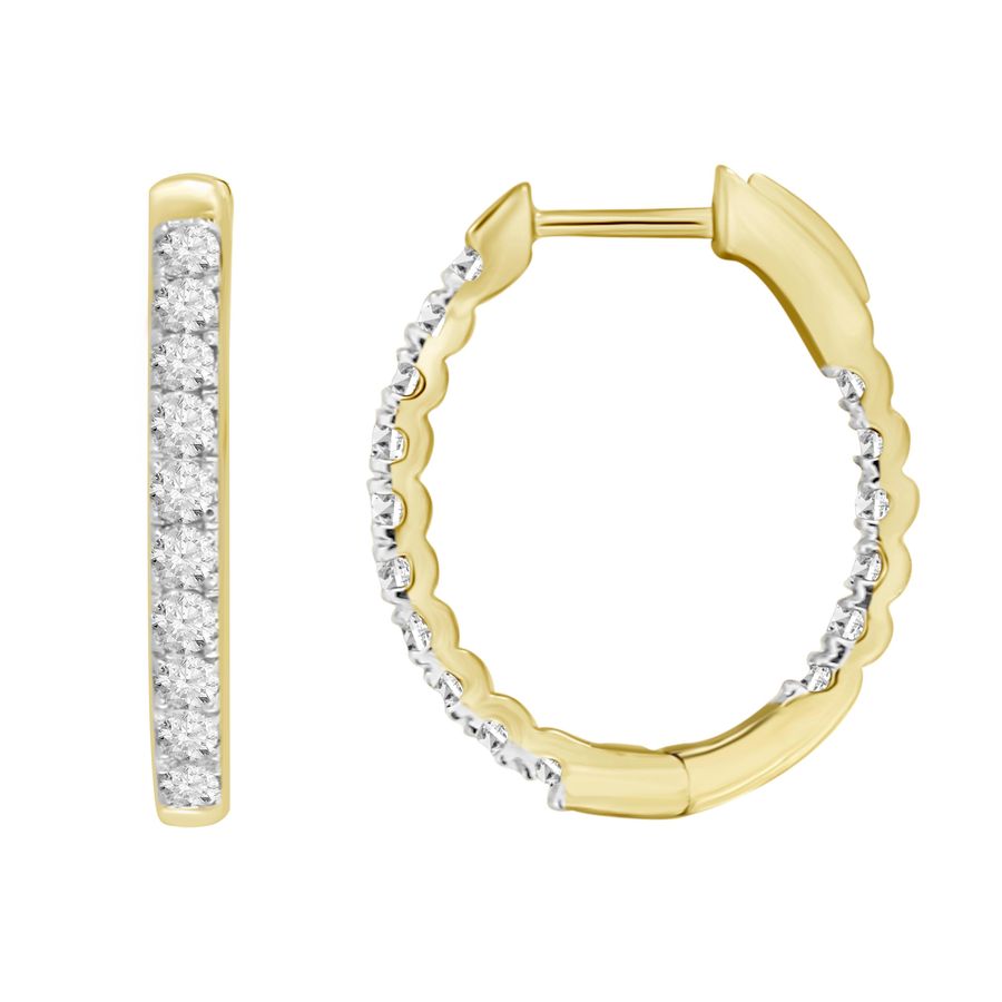 LADIES HOOP EARRINGS 1.00CT ROUND DIAMOND 14K YELLOW GOLD