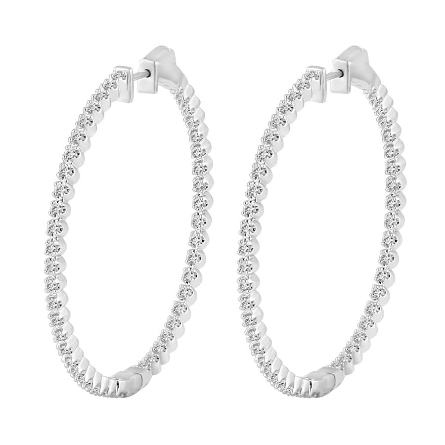 HOOPS EARRINGS 1.50CT ROUND DIAMOND 10K WHITE GOLD