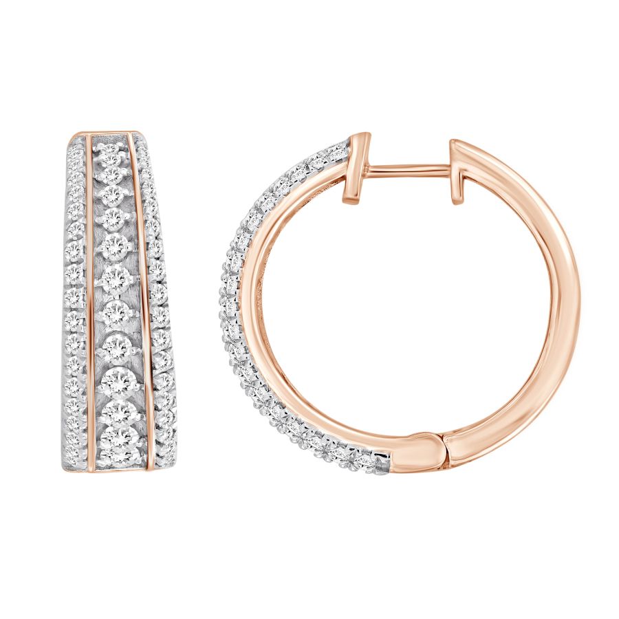 HOOPS EARRINGS 1.50CT ROUND DIAMOND 14K ROSE GOLD