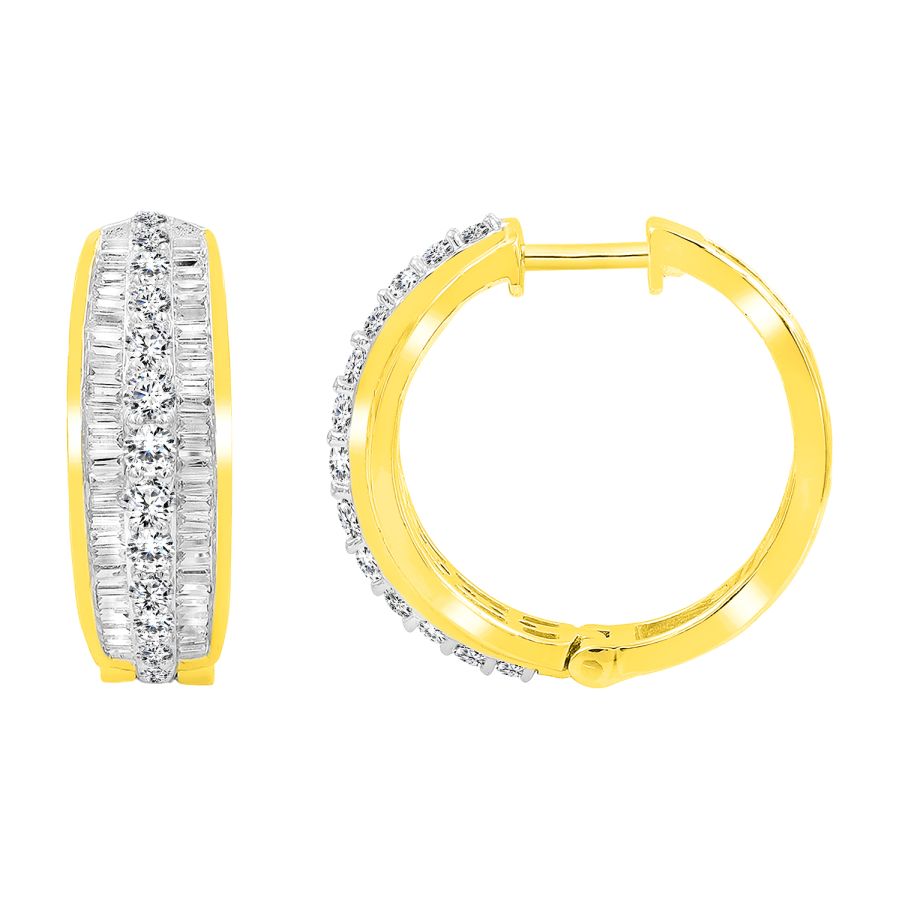 HOOPS EARRINGS 2.00CT ROUND/BAGUETTE DIAMOND 14K YELLOW GOLD