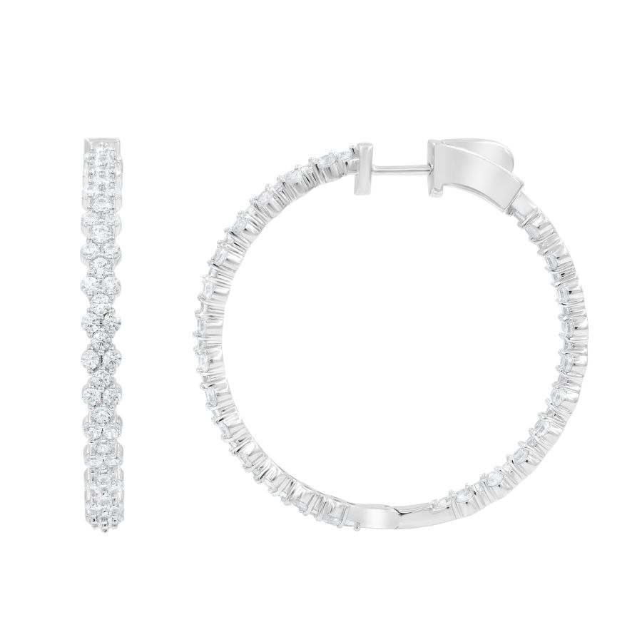 HOOPS EARRINGS 4.00CT ROUND DIAMOND 14K WHITE GOLD