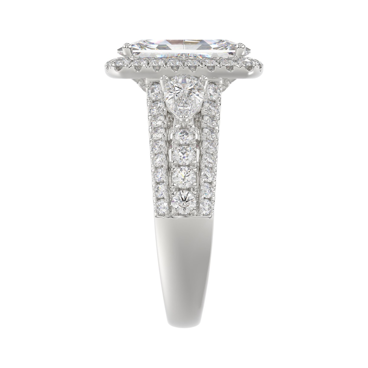 Ladies 14K White Gold 3 1/2CT Featuring Fashion Ring with Round, Pear & Cushion Diamond 2.00CT Cushion Center stone (Color F-G -Clarity VS1/VS2)