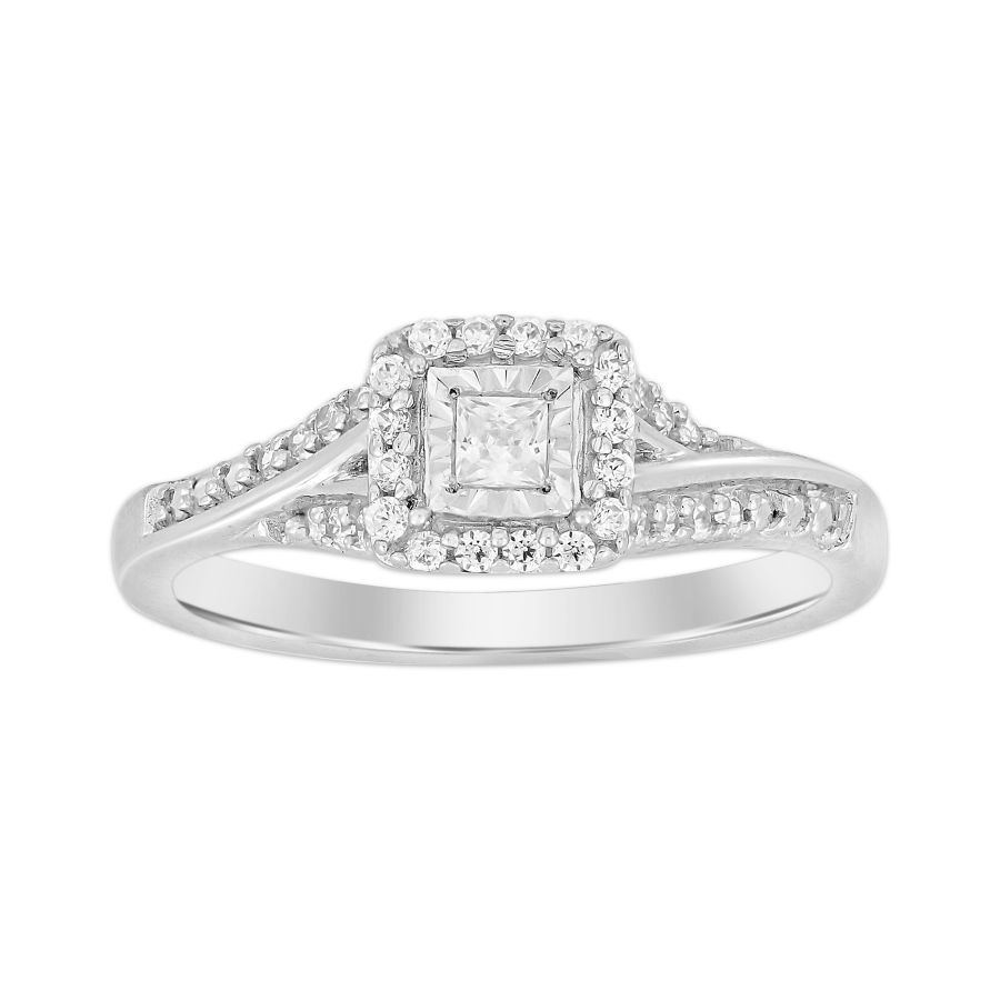 LADIES BAND 0.08CT ROUND/PRINCESS DIAMOND 10K WHITE GOLD