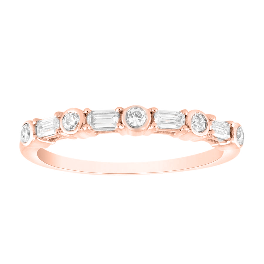 LADIES BAND 0.25CT ROUND/BAGUETTE DIAMOND 10K ROSE GOLD