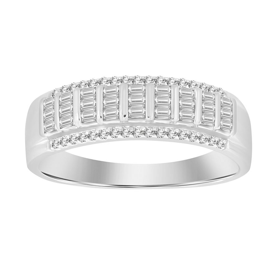LADIES BAND 0.25CT ROUND/BAGUETTE DIAMOND 10K WHITE GOLD