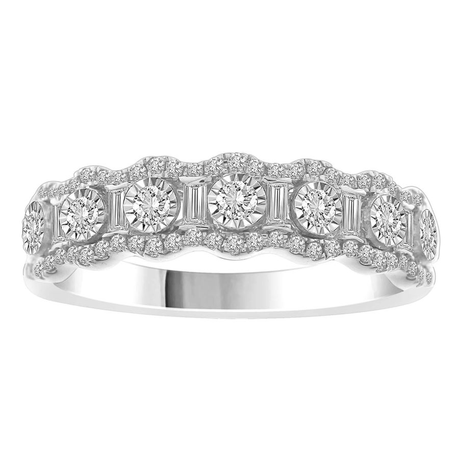 LADIES BAND 0.50CT ROUND/BAGUETTE DIAMOND 14K WHITE GOLD