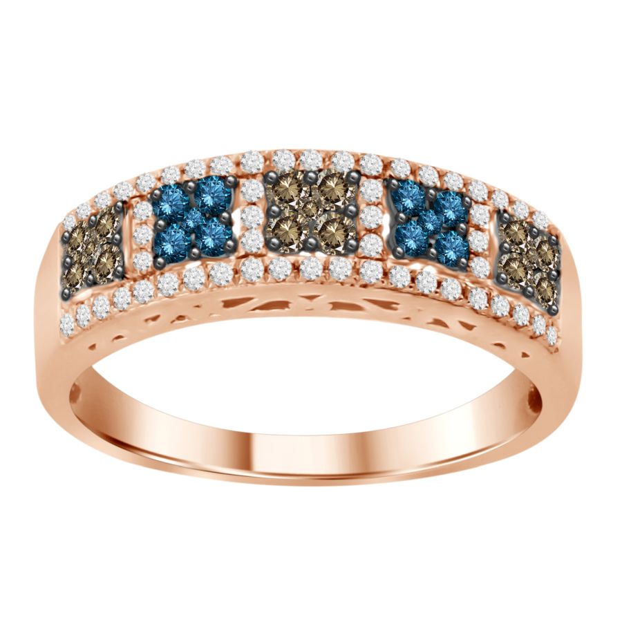 LADIES BAND 0.50CT ROUND DARK BROWN/BLUE DIAMOND 10K ROSE GOLD