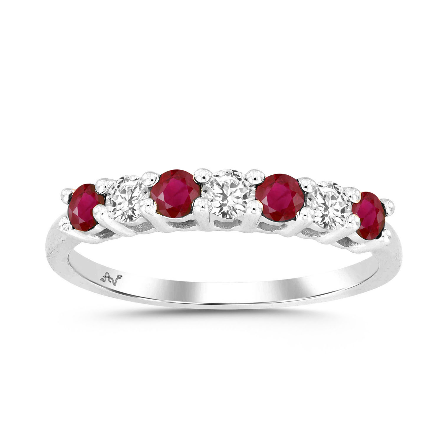 LADIES BAND 0.62CT ROUND/RUBY DIAMOND 14K WHITE GOLD (CENTER STONE RUBY APPROX- 0.40CT)