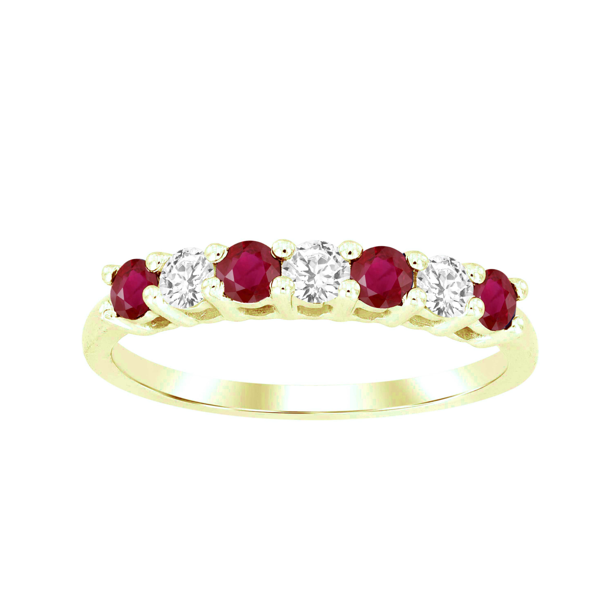 LADIES BAND 0.65CT RUBY/ROUND DIAMOND 14K YELLOW GOLD