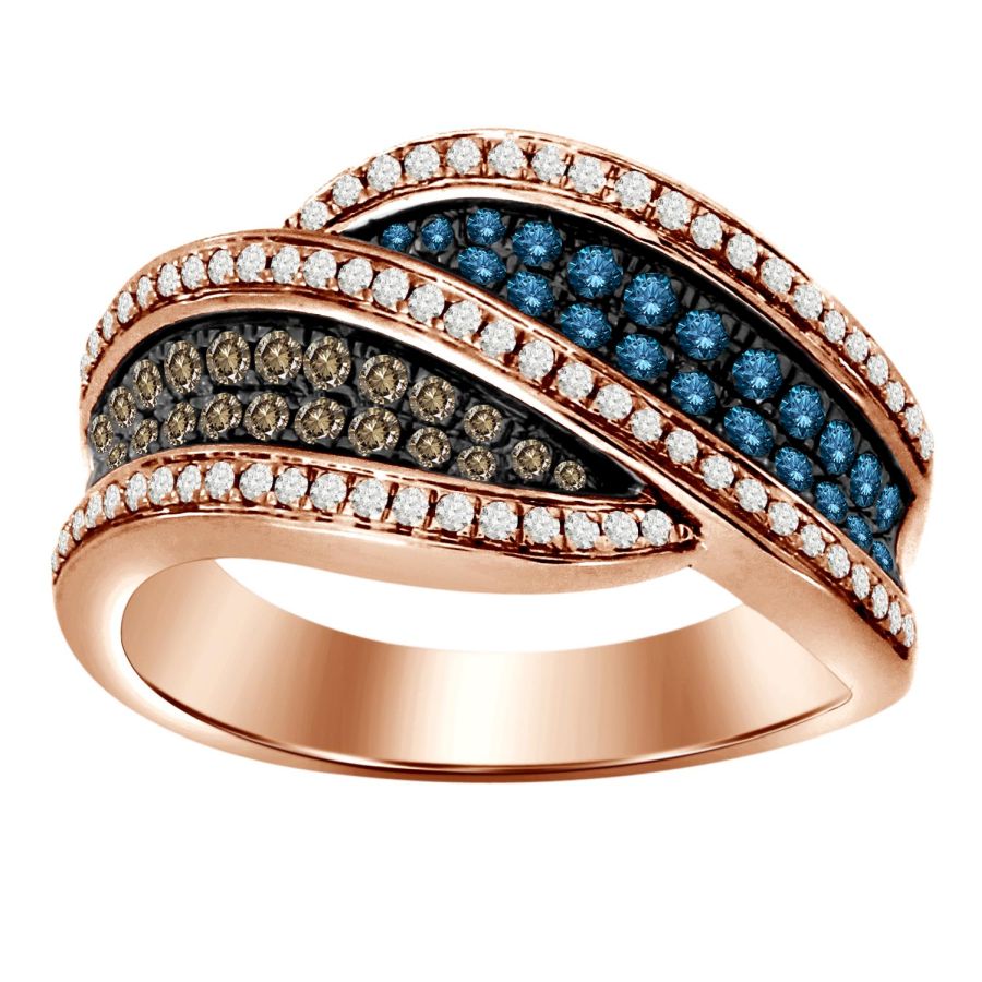 LADIES BAND 0.75CT ROUND DARK BROWN/BLUE DIAMOND 10K ROSE GOLD