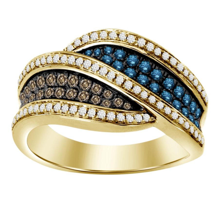 LADIES BAND 0.75CT ROUND DARK BROWN/BLUE DIAMOND 10K YELLOW GOLD