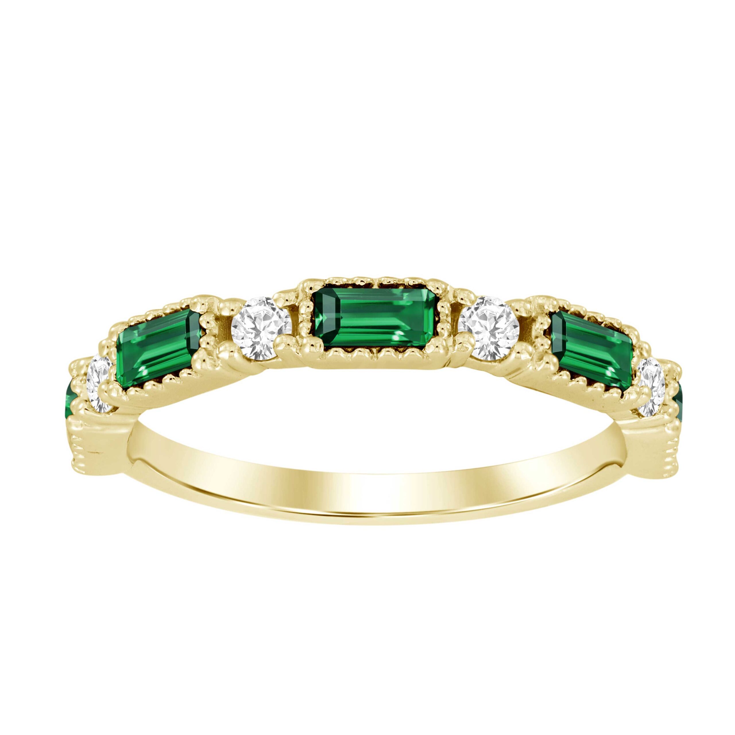 LADIES BAND 0.95CT EMERALD/ROUND DIAMOND 14K YELLOW GOLD(CENTER STONE 0.75CT EMERALD DIAMOND)