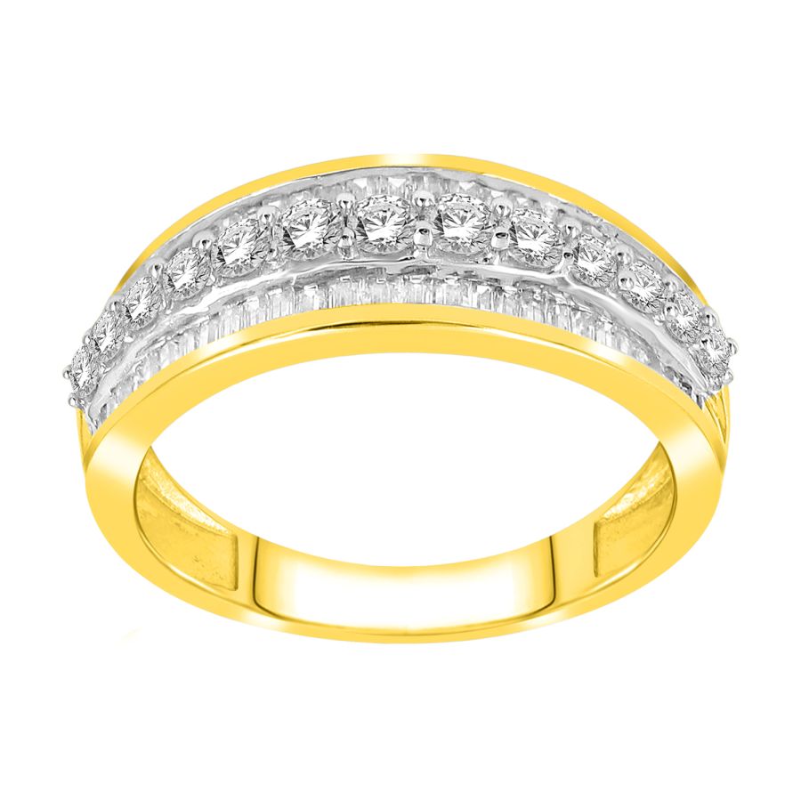 LADIES BAND 1.00CT ROUND/BAGUETTE DIAMOND 10K YELLOW GOLD