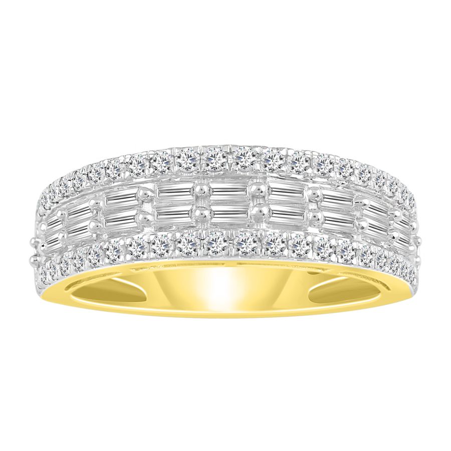 LADIES BAND 1.00CT ROUND/BAGUETTE DIAMOND 10K YELLOW GOLD