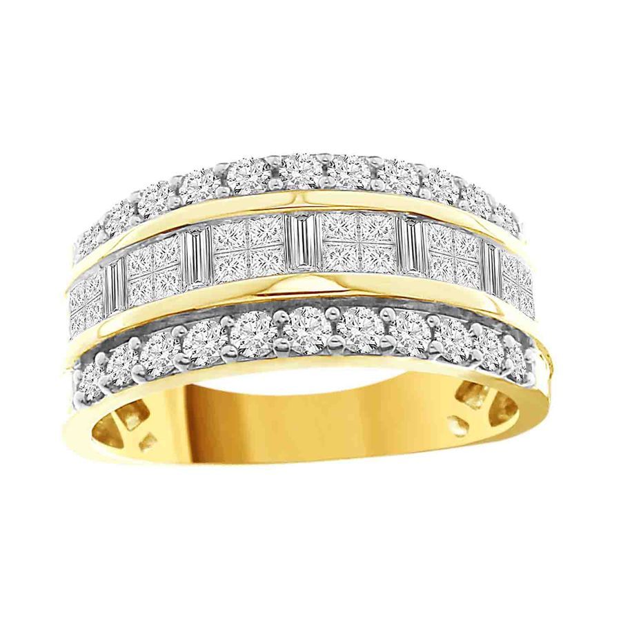 LADIES BAND 2.00CT ROUND/BAGUETTE/PRINCESS DIAMOND 14K YELLOW GOLD