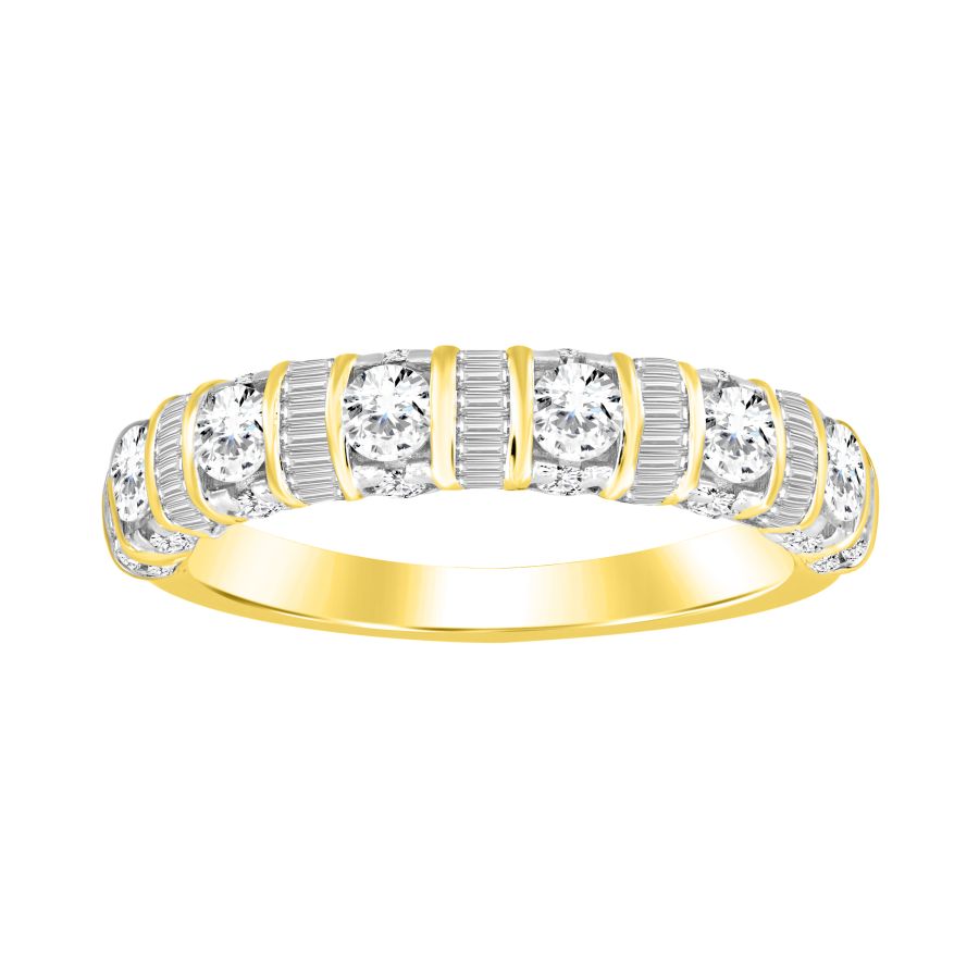 LADIES BAND 1.00CT ROUND/BAGUETTE DIAMOND 14K YELLOW GOLD