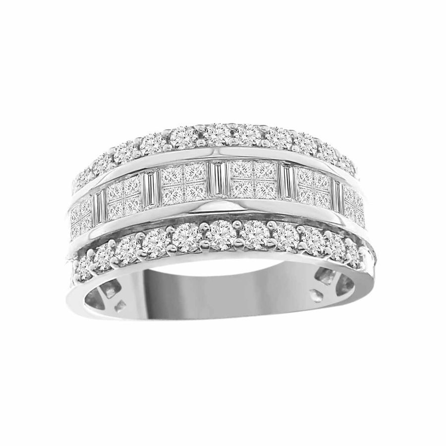 LADIES BAND 1.00CT ROUND/BAGUETTE/PRINCESS DIAMOND 14K WHITE GOLD