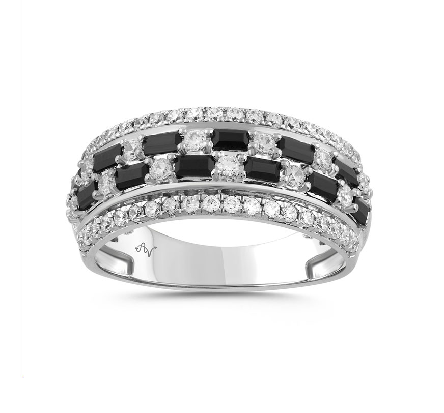 LADIES BAND 1.00CT ROUND/BLACK/BAGUETTE DIAMOND 14K WHITE GOLD
