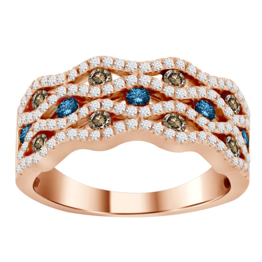 LADIES BAND 1.00CT ROUND DARK BROWN/BLUE DIAMOND 10K ROSE GOLD