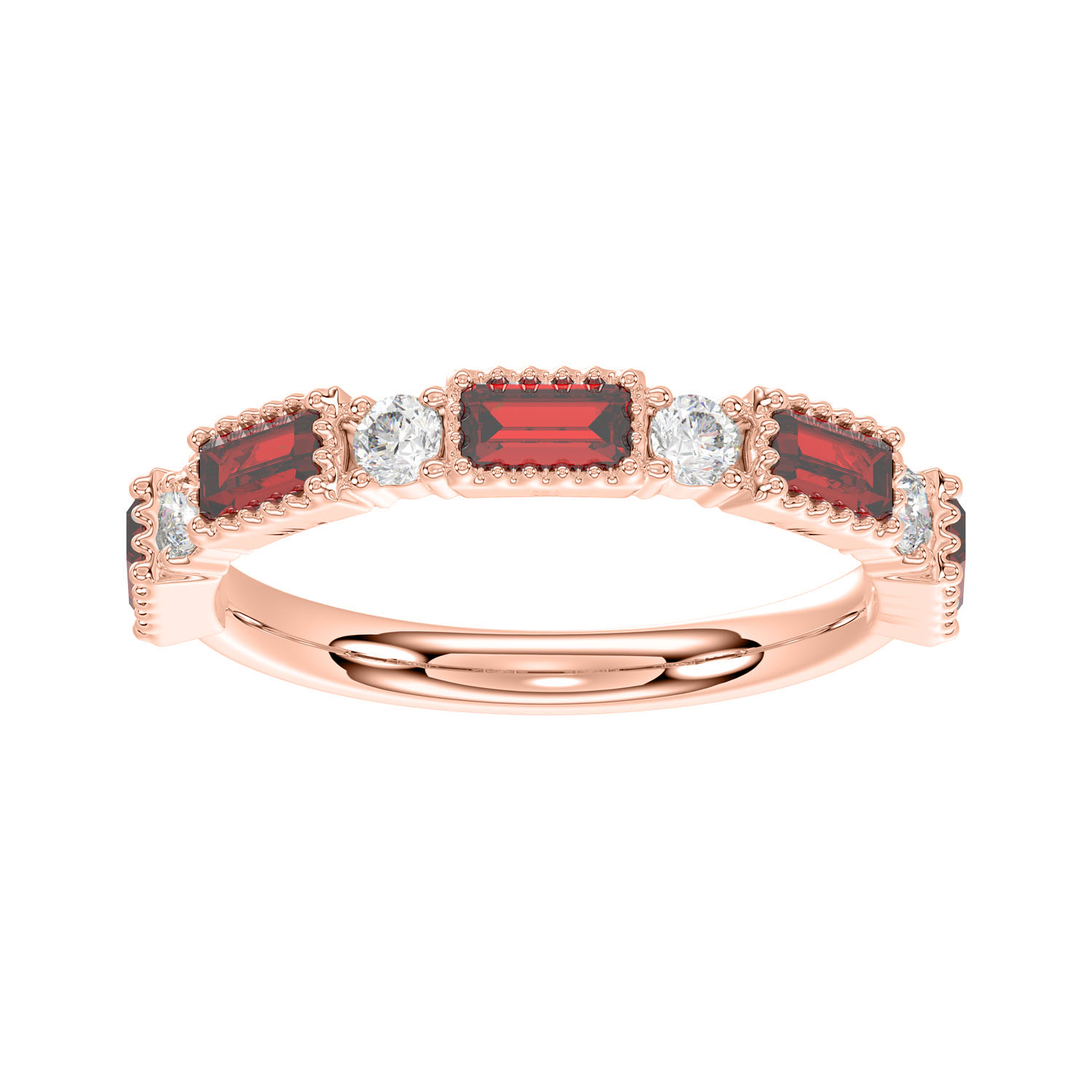 LADIES BAND 1.00CT ROUND/RUBY DIAMOND 14K ROSE GOLD (RUBY APPROX 0.75CT)