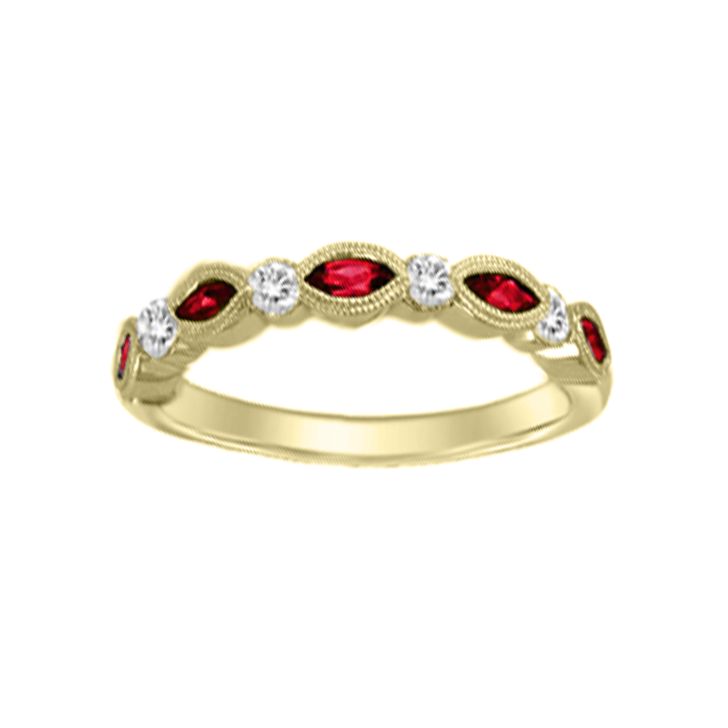 Home Rings LADIES BAND 1.00CT ROUND/RUBY DIAMOND 14K YELLOW GOLD (CENTER STONE RUBY APPROX- 0.80CT)