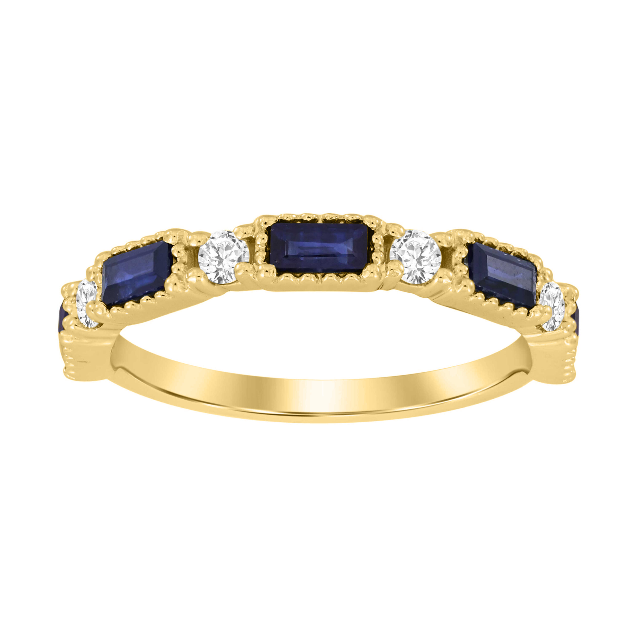 Home Rings LADIES BAND 1.10CT BLUE SAPHIRE/ROUND DIAMOND 14K YELLOW GOLD