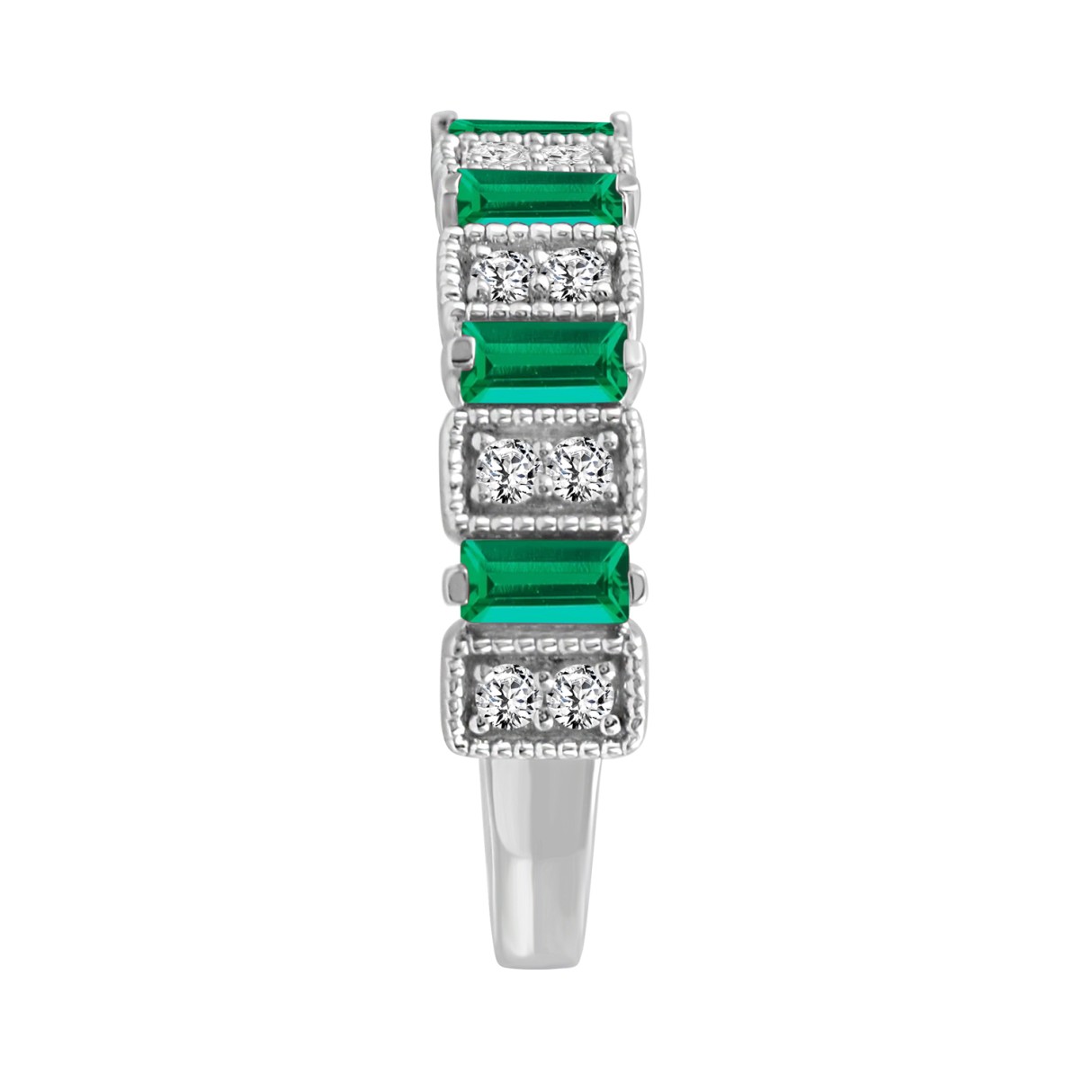 LADIES BAND 1/3CT ROUND/BAGUETTE EMERALD DIAMOND 14K WHITE GOLD (CENTER STONE EMERALD DIAMOND 3/4CT )