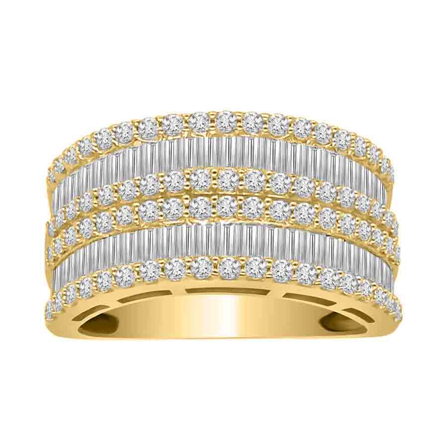 LADIES BAND 1.50CT ROUND/BAGUETTE DIAMOND 14K YELLOW GOLD