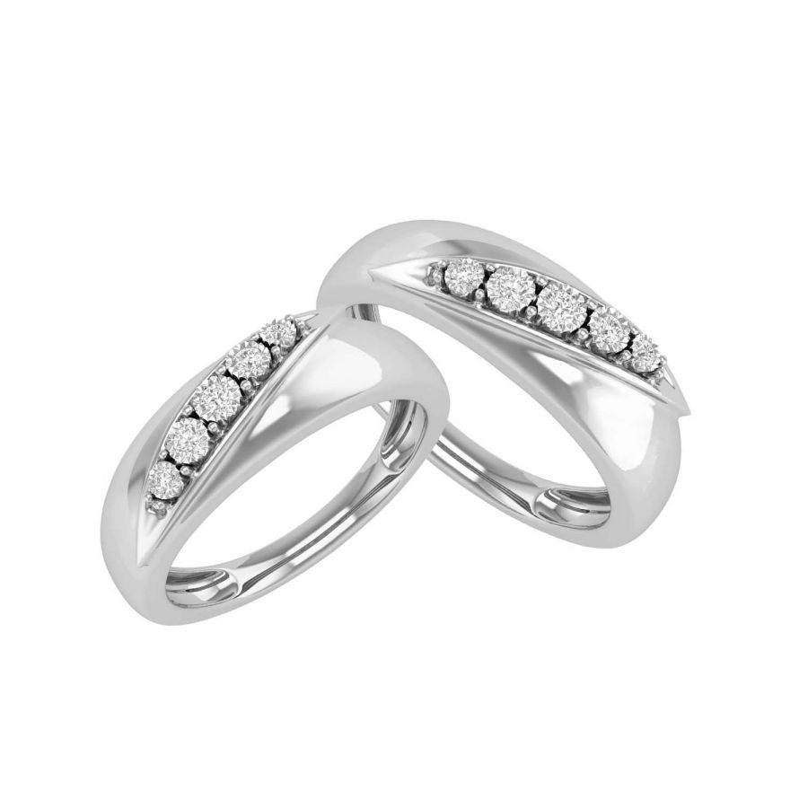 LADIES BAND SET 0.06CT ROUND DIAMOND 10K WHITE GOLD