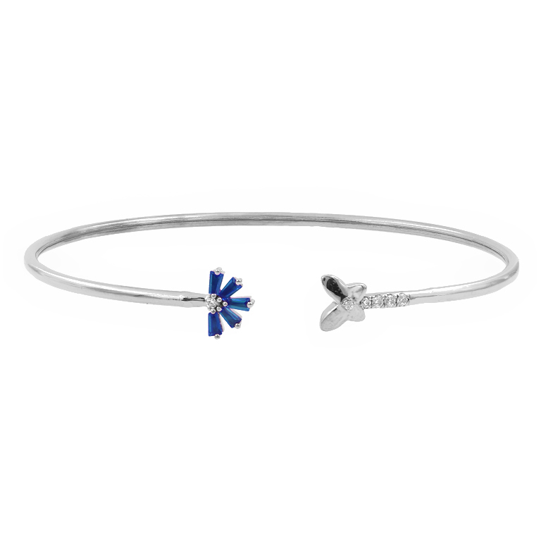 LADIES BANGLE 0.40CT ROUND/BAGUETTE DIAMOND 14K WHITE GOLD (CENTER STONE 0.10CT BLUE SAPPHIRE BAGUETTE DIAMOND)