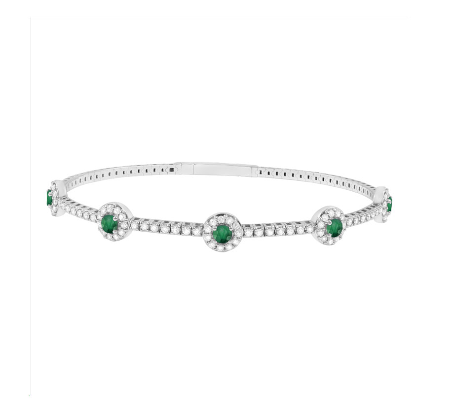 Home Bracelets/bangles LADIES BANGLE 2.15CT EMERALD/ROUND DIAMOND 14K WHITE GOLD
