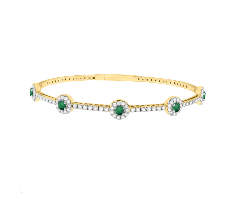 LADIES BANGLE 2.15CT EMERALD/ROUND DIAMOND 14K YELLOW GOLD