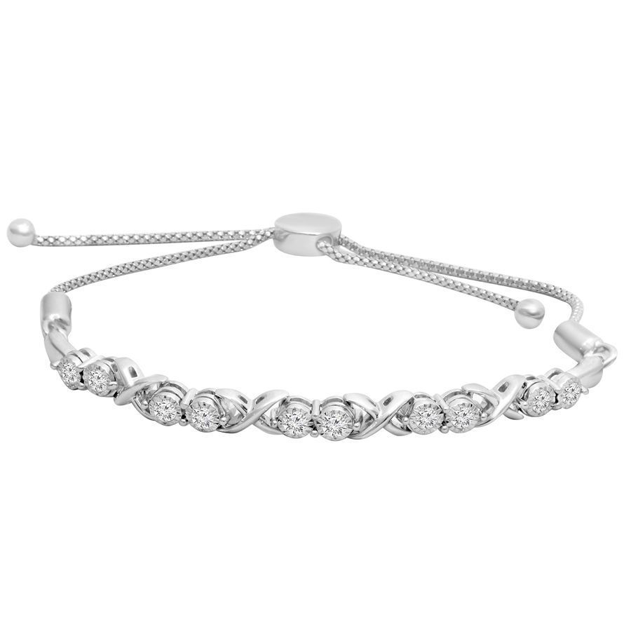 LADIES BRACELET 0.50CT ROUND DIAMOND STERLING SILVER/WHITE GOLD