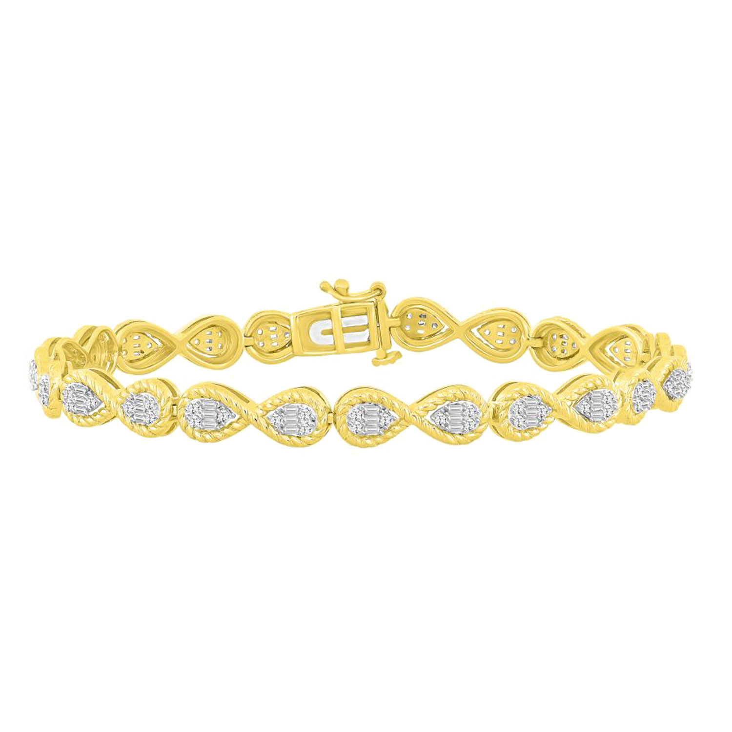 Home Bracelets/bangles LADIES BRACELET 0.75CT ROUND/BAGUETTE DIAMOND 10K YELLOW GOLD