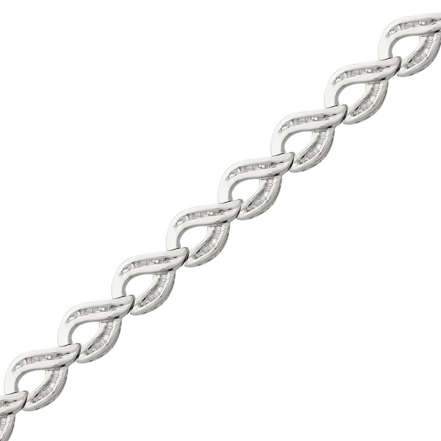 LADIES BRACELET 1.00CT BAGUETTE DIAMOND STERLING SILVER/WHITE GOLD