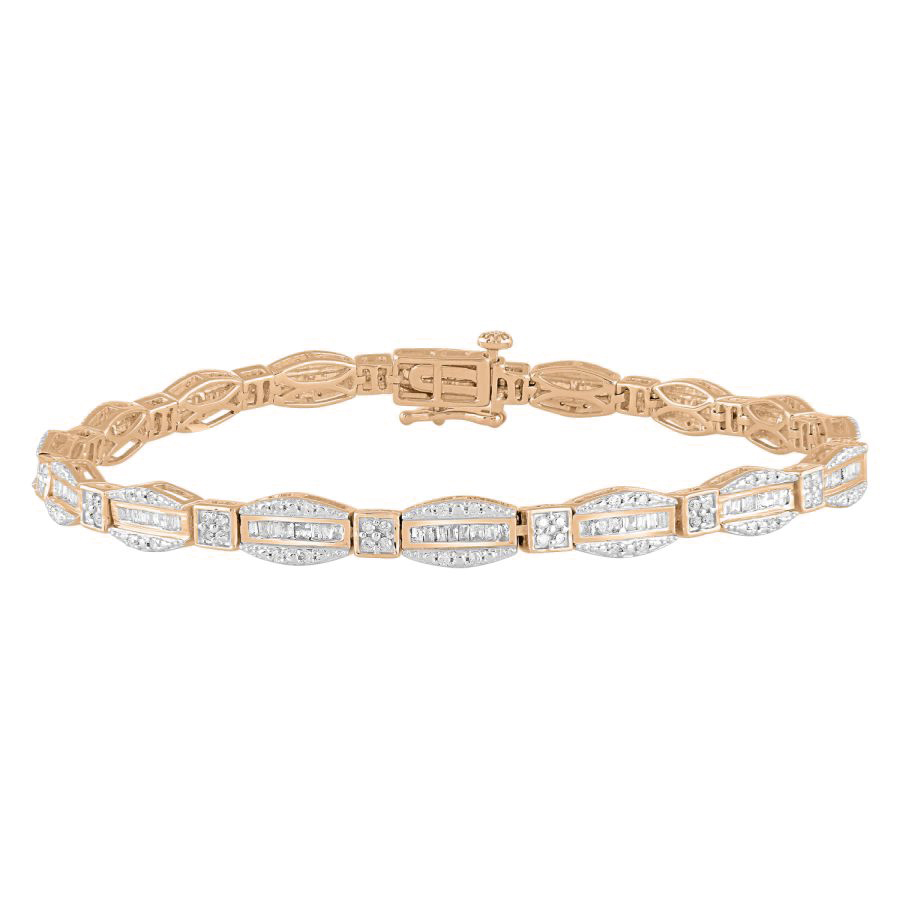 Home Bracelets/bangles LADIES BRACELET 1.00CT ROUND/BAGUETTE DIAMOND 10K ROSE GOLD