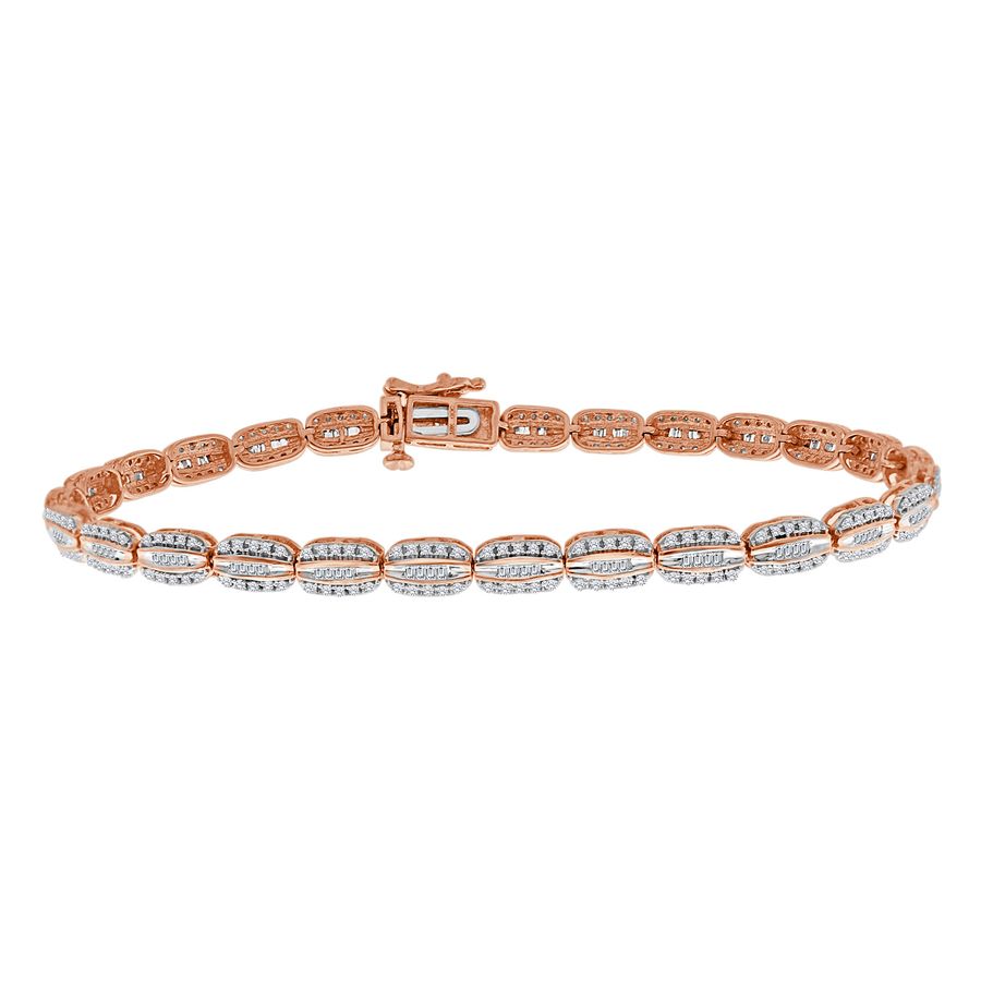 Home Bracelets/bangles LADIES BRACELET 1.00CT ROUND/BAGUETTE DIAMOND 10K ROSE GOLD