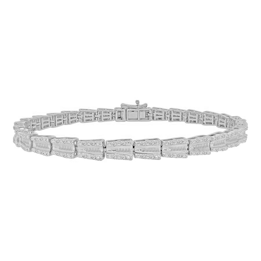 Home Bracelets/bangles LADIES BRACELET 1.00CT ROUND/BAGUETTE DIAMOND 10K WHITE GOLD