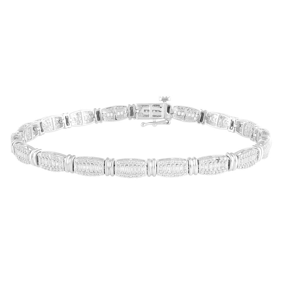 LADIES BRACELET 1.00CT ROUND/BAGUETTE DIAMOND 10K WHITE GOLD